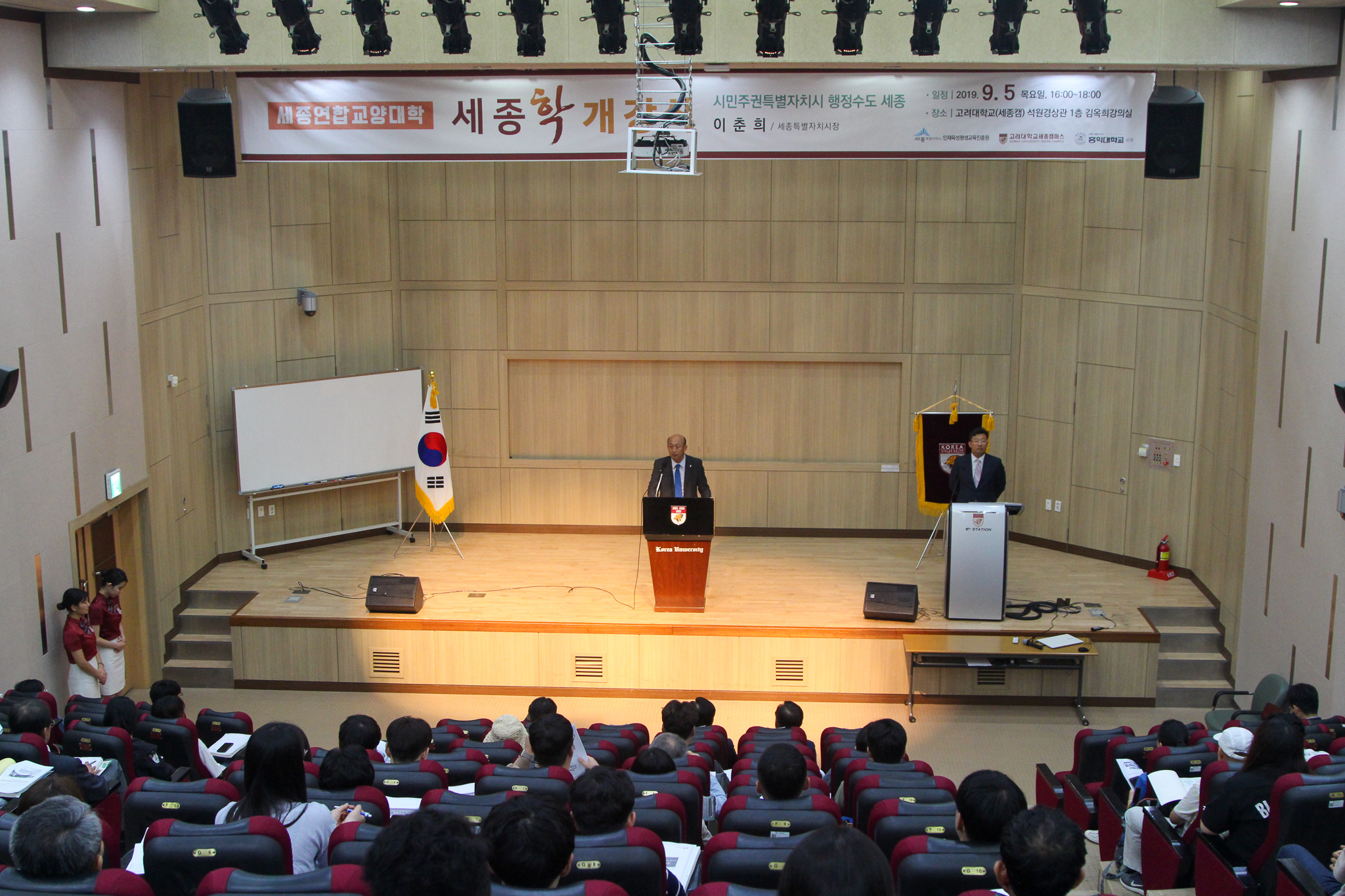 9월 5일, 고려대학교 세종캠퍼스 석원경상관에서 세종연합교양대학 세종학 개강식이 열렸다. 고려대학교 세종캠퍼스, 홍익대학교 세종캠퍼스, 세종특별자치시인재육성평생교육진흥원이 공동 주관한 세종학은 대학생과 시민이 함께 듣는 지역학 프로그램으로 지역 정체성을 함양하고 애향심과 지역적 자긍심을 고취하기 위해 기획됐다. 개강식에는 김영 고려대학교 세종부총장, 김기수 홍익대학교 세종부총장, 이춘희 세종특별자치시 시장, 임각철 세종특별자치시인재육성평생교육진흥원장 등 많은 내·외빈이 자리해 개강을 축하했다.